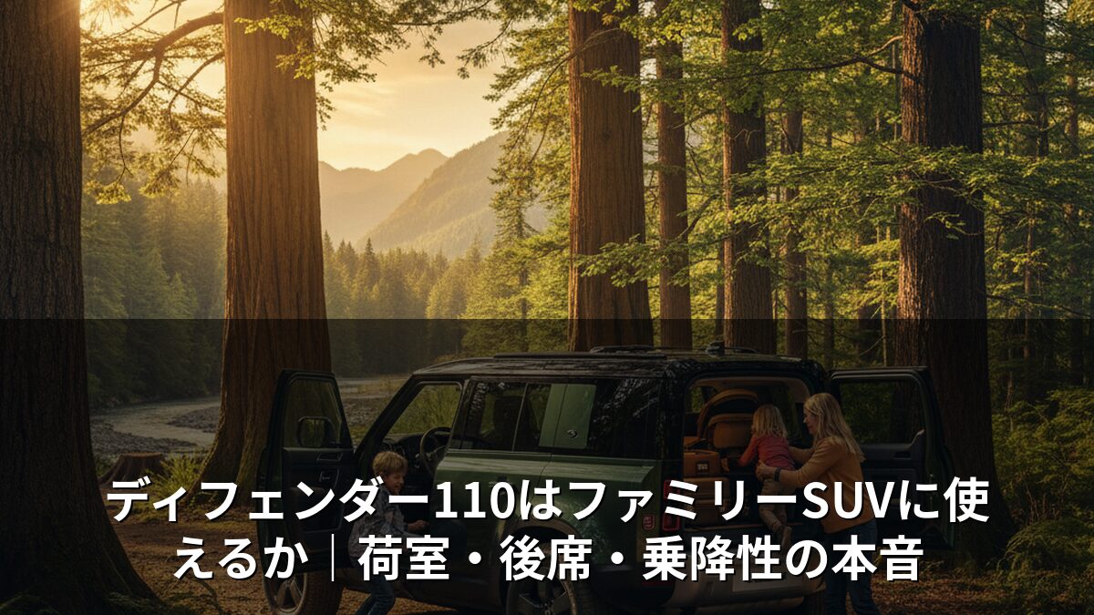 この記事では、ファミリーSUVとしてのディフェンダー110を「荷室」「後席」「乗降性」という3つの軸で徹底的に評価する。購入前に「ファミリーユースには向かないのでは?」と迷っている方に向けて、オーナーとして正直な答えを届けたい。