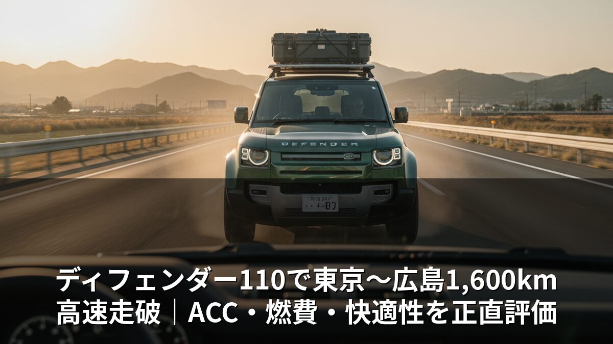 今回の東京〜広島往復1,600kmを通じて、私のディフェンダー110に対する評価は大きく上がりました。購入前に最も心配していた高速走行の快適性が、想定を超える水準だったからです。